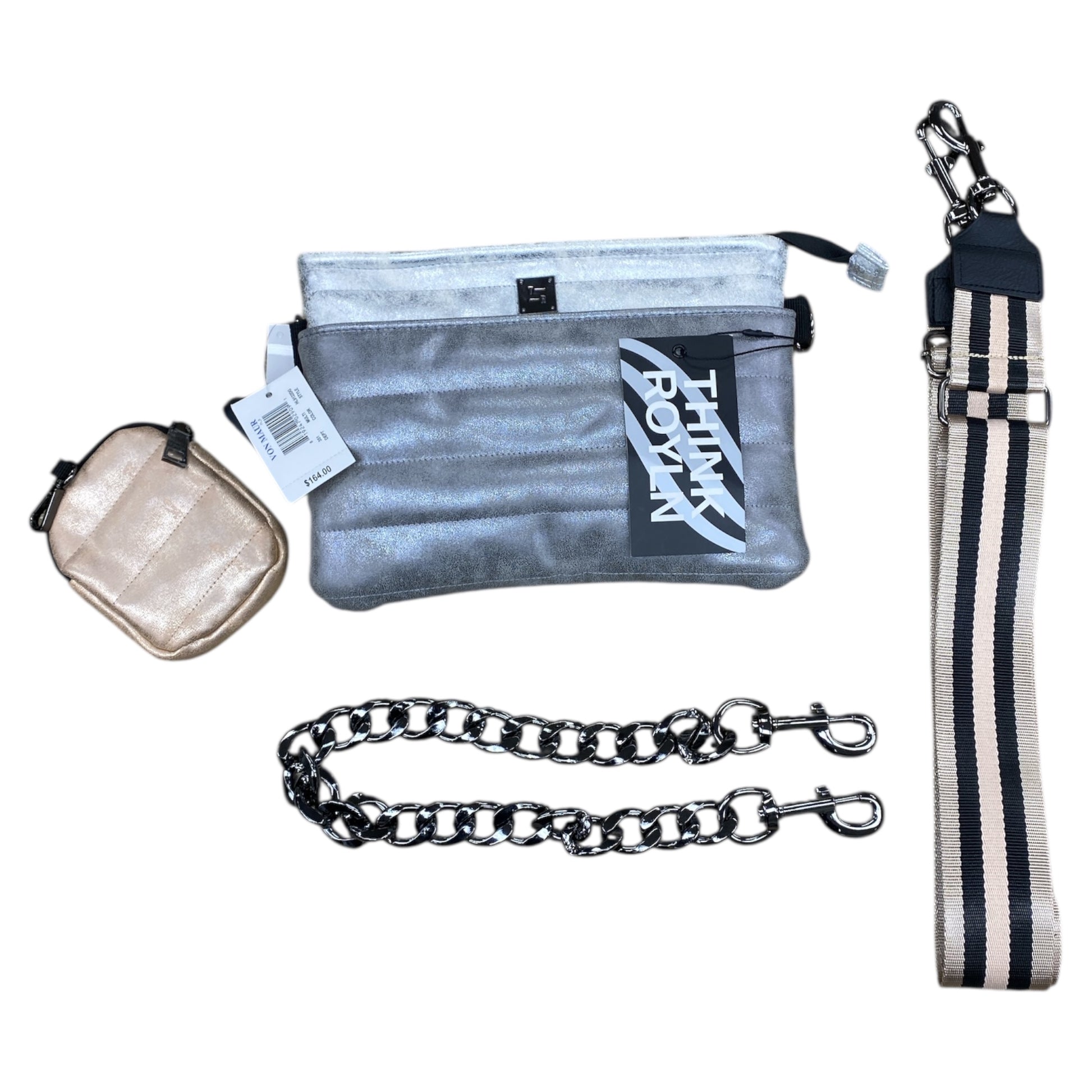 Indulge in the chic shimmer of the Think Royln Silver Handbag. Effortlessly stylish and versatile, this medium-sized bag adds a touch of glam to any outfit. Perfect for everyday elegance.