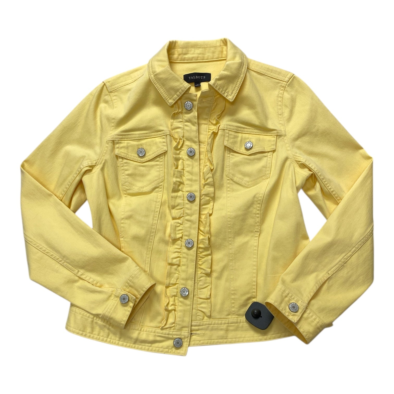 Yellow denim Jacket by Talbots in size M: a sunny statement piece for vibrant personalities, crafted for style and comfort.