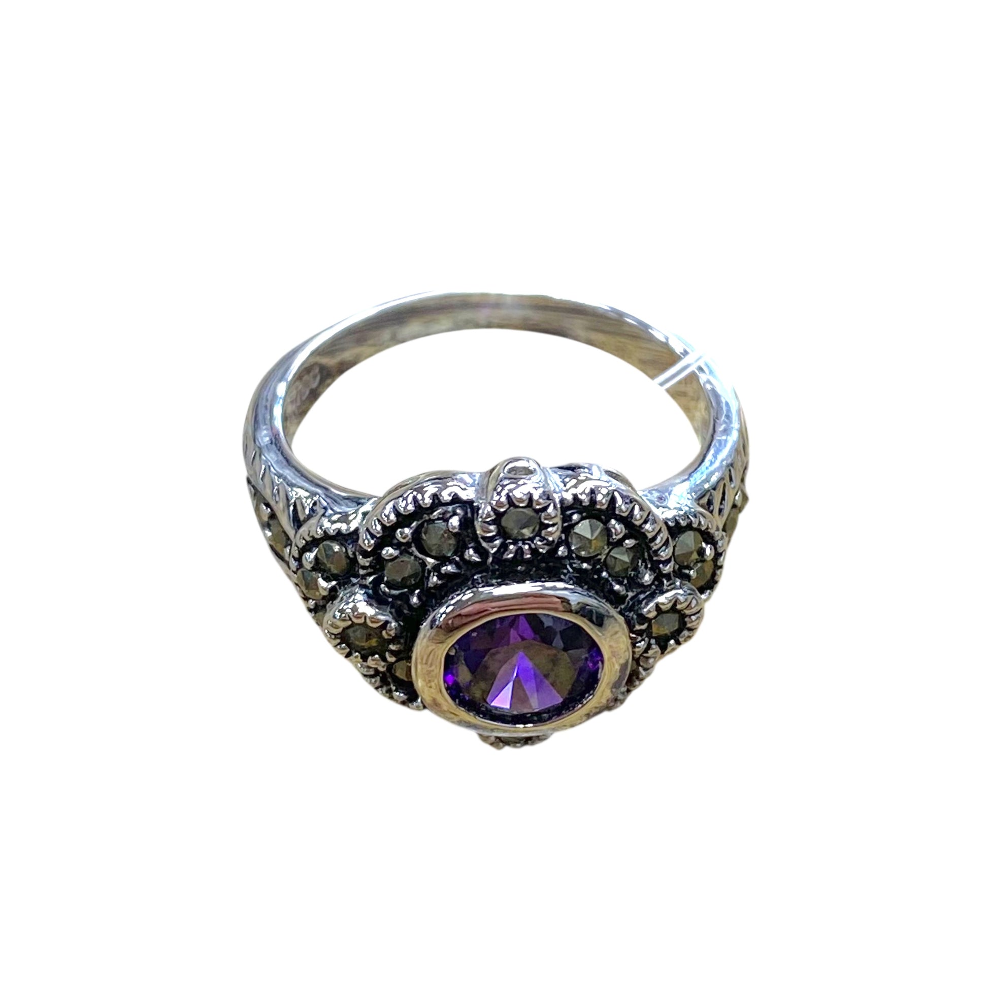 Make a bold statement with this stunning Purple & Silver Ring by CMC, Size 8.