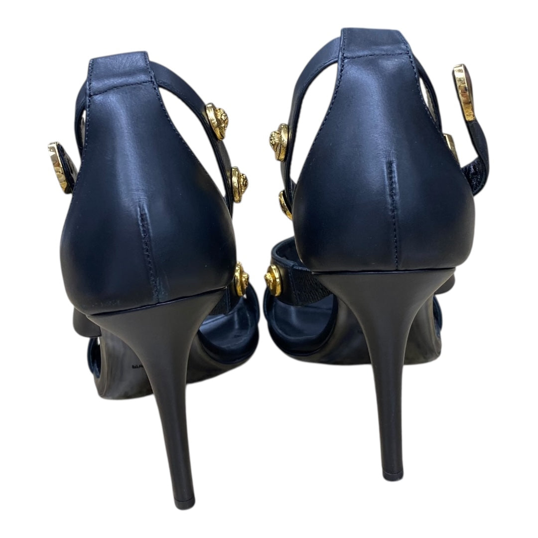 Sandals Luxury Designer By Versace In Black & Gold, Size:6.5