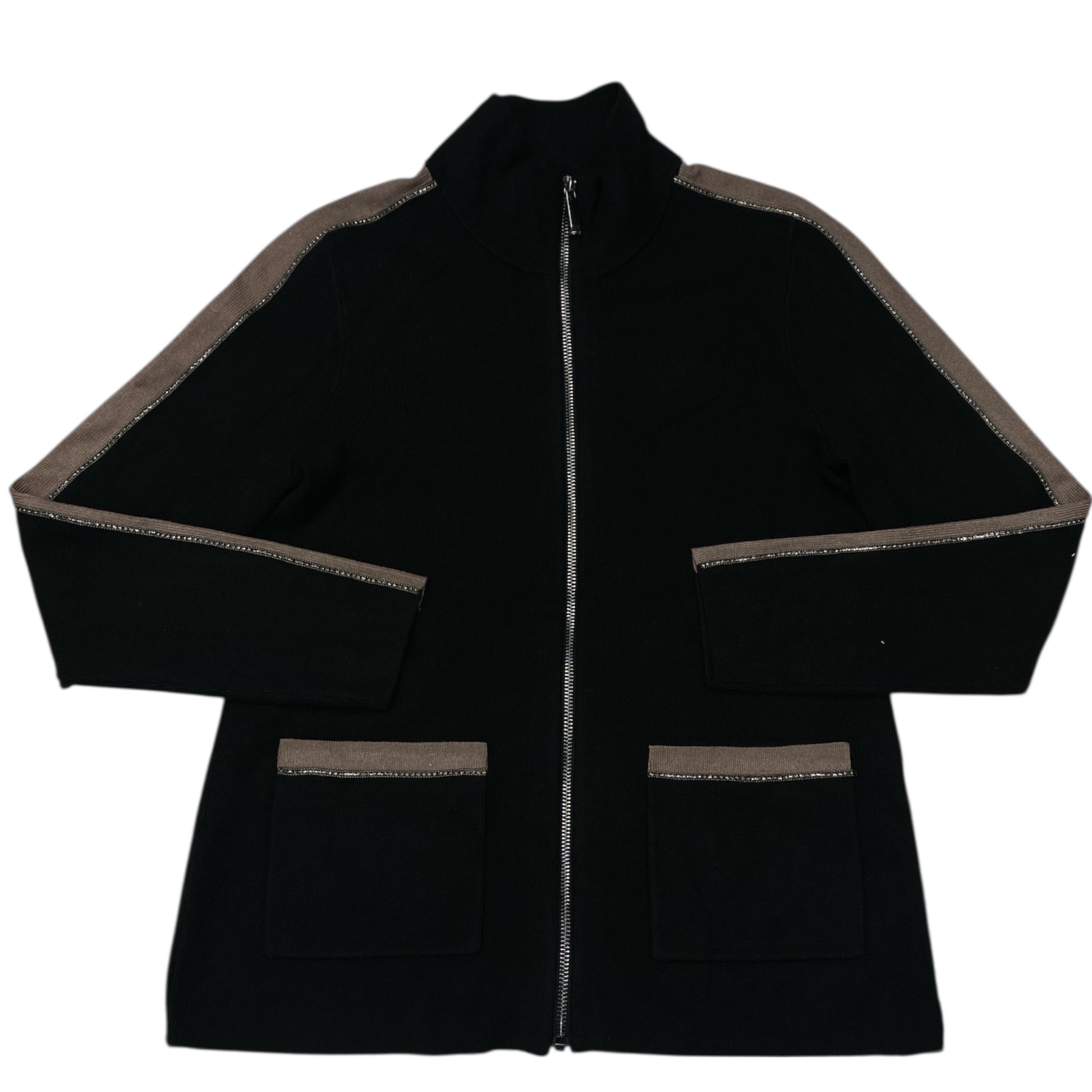 Sweater Cardigan By Chicos In Black & Brown, Size:S